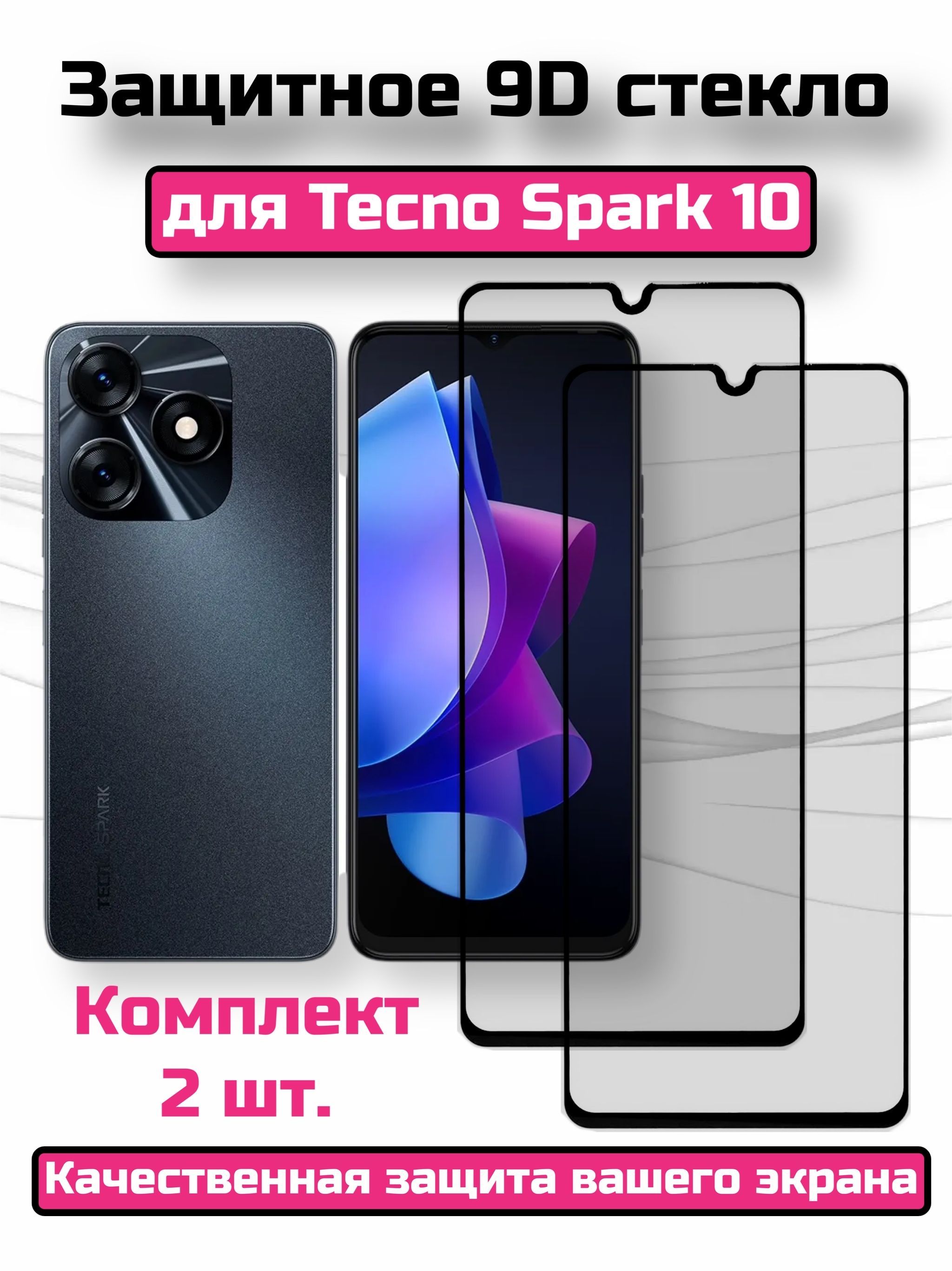 Защитное стекло Tecno Spark 10 (Kl5q)/Spark 10C (Kl5m)/Spark 9 Pro (KH7n) - Премиальное